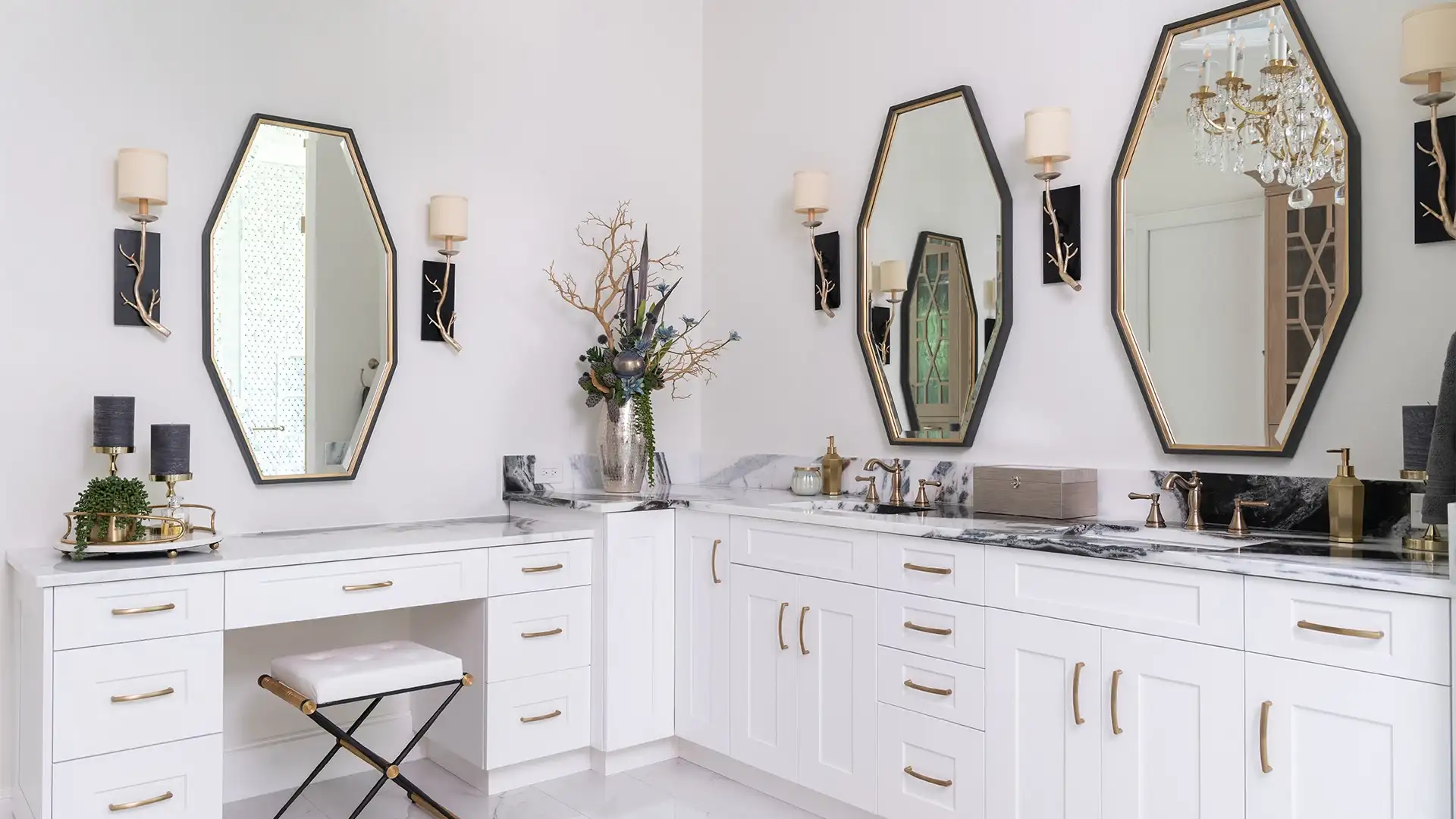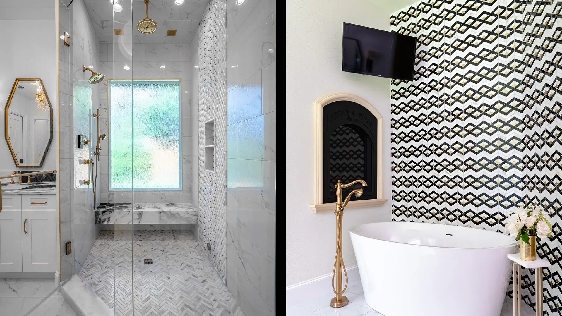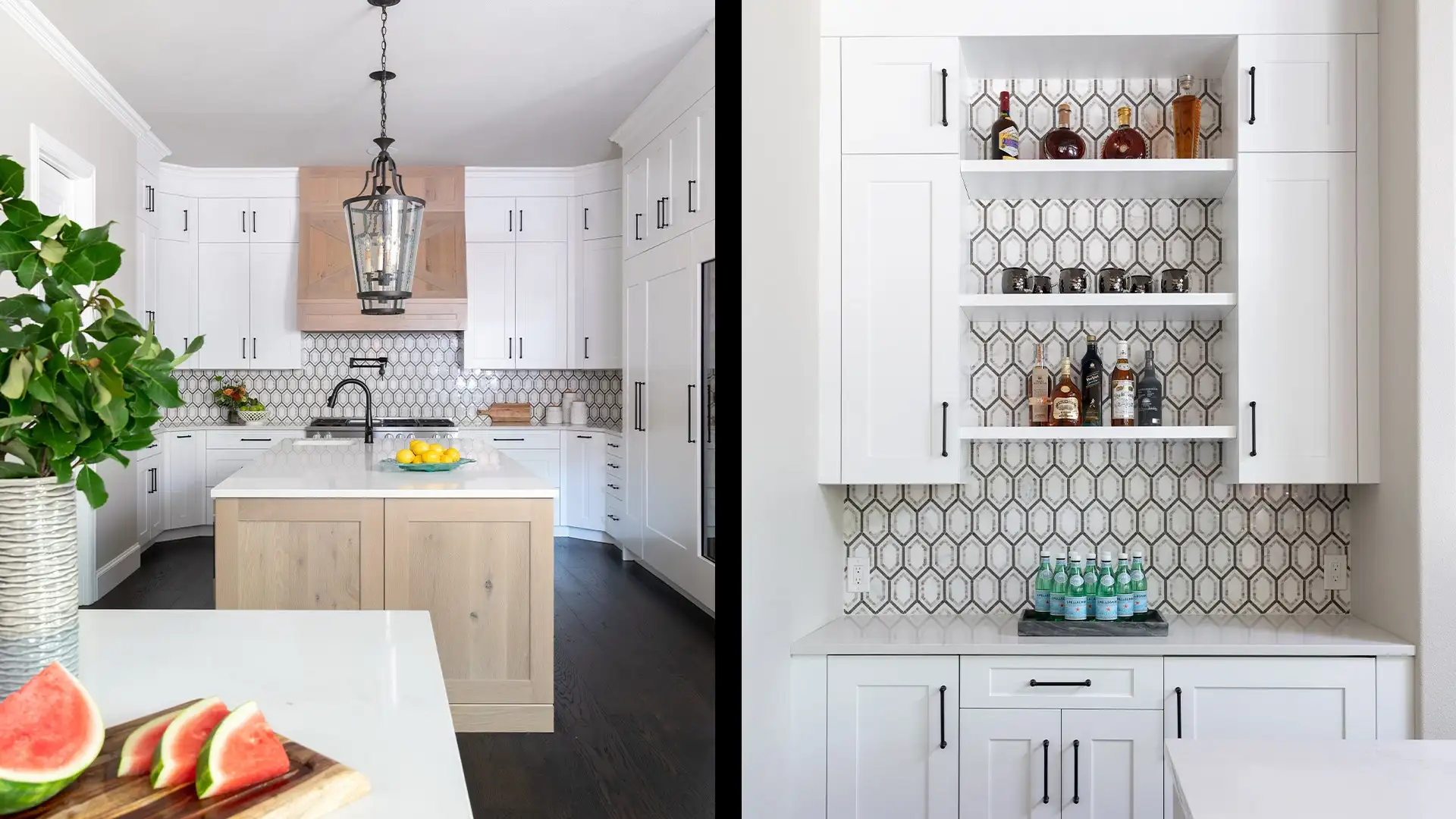 The main goals were to center the Miele range on the focal wall, include column refrigeration with a wine unit, and design a bar area that complemented the kitchen’s aesthetics. The new design features clean line cabinetry with rustic touches, matte black accents, and a marble mosaic backsplash.