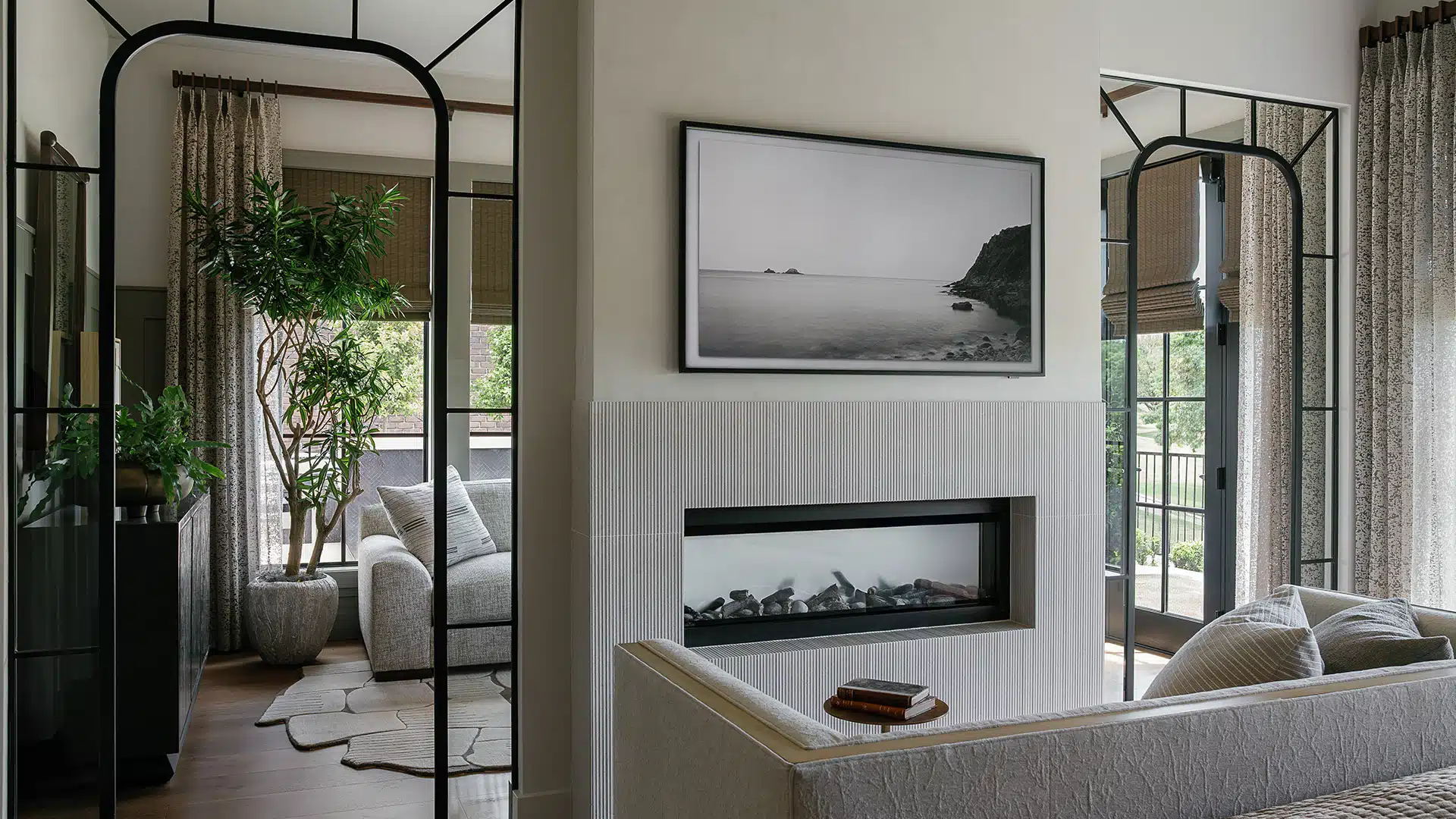 The primary suite features an elegant double-door entry into a serene private retreat. The layout was redesigned for comfort and balance, bringing a sense of continuity and calm to this personal haven.